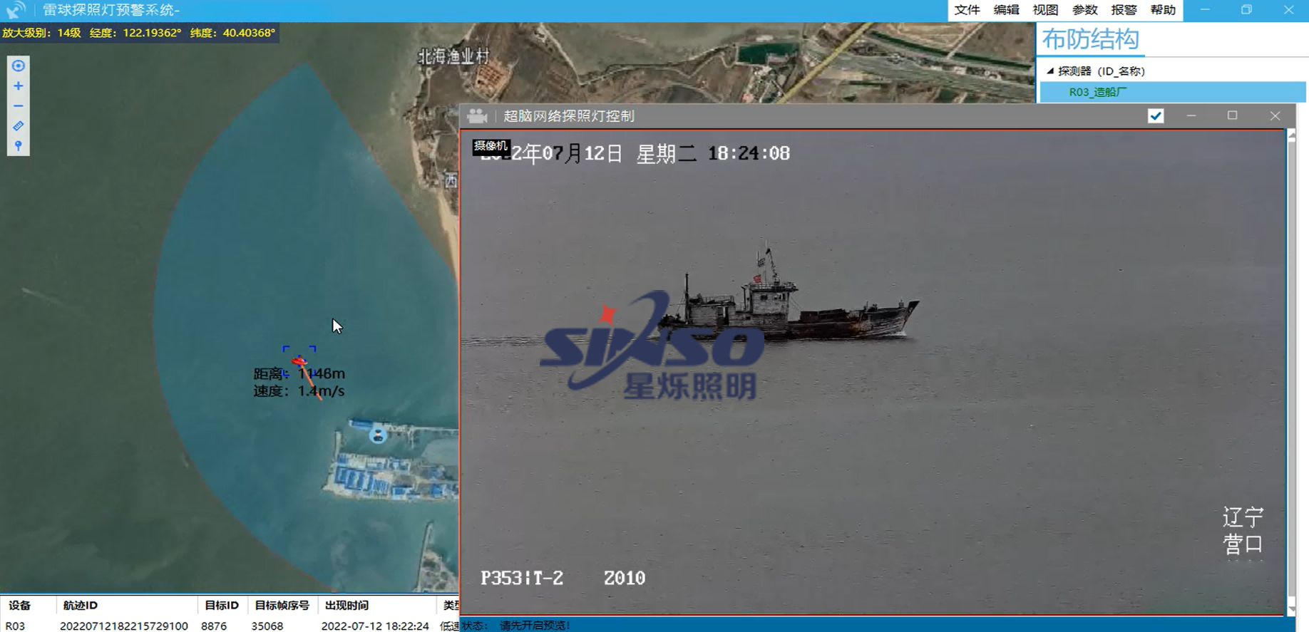 海產(chǎn)養(yǎng)殖防損安防系統(tǒng)配備了亮度高、射程遠(yuǎn)、照明均勻度好的超腦網(wǎng)絡(luò)探照燈,確保整個海面無死角盲區(qū);探照燈提供了方向、開關(guān)燈、巡跡,預(yù)置位、自動巡點等自動化功能,可以設(shè)置探照燈在監(jiān)控區(qū)域內(nèi)自動巡航掃射,檢查養(yǎng)殖場的情況,探照燈可以指哪照哪,一鍵照到非法船只容易進(jìn)入的區(qū)域;以及發(fā)生報警時,第一時間跟蹤入侵船只,加上攝像機(jī)高清圖像,使的船只“無處可逃”,同時無報警時,探照燈也能為攝像機(jī)進(jìn)行補(bǔ)光,為監(jiān)控室提供不同效果畫面的高清晰度的全彩圖像。