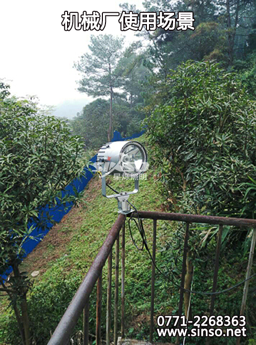 廣西百色機(jī)械廠于2015年11月采購(gòu)了3臺(tái)星爍SN-220強(qiáng)光遠(yuǎn)程探照燈,用于機(jī)械廠夜間照明。機(jī)械廠位于山林區(qū),位置偏僻,夜間安全隱患較多,堆放有很多價(jià)值高的物資設(shè)備,因?yàn)閳?chǎng)地大、人員缺少、監(jiān)控設(shè)備夜間拍攝距離有限、對(duì)于這些物資設(shè)備的看護(hù)放到一直是眾多業(yè)主的難題。