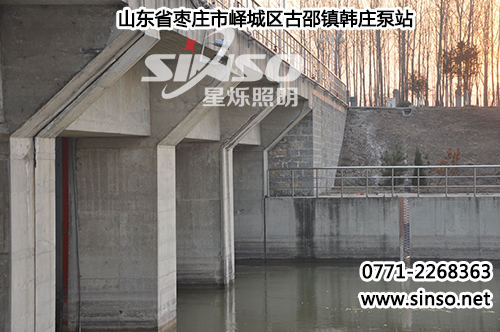 2015年12月18日, 韓莊泵站采購(gòu)了11臺(tái)星爍型號(hào)SN-221無(wú)線遙控探照燈,用于韓莊泵站夜間照明。韓莊泵站為大型泵站,工程等別為Ⅰ等,主要建筑物包括站身、引水閘、進(jìn)出水池為1級(jí),其他易于修復(fù)的次要建筑物如引水渠、出水渠、排澇涵洞等為3級(jí),臨時(shí)建筑物如施工圍堰等為4級(jí)。