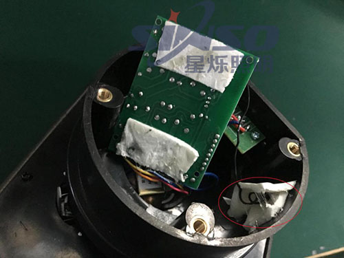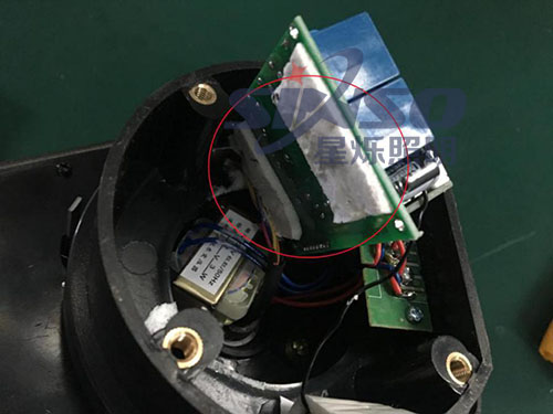 ◆220V電路板無(wú)固定,隨意用泡沫膠粘連。背部焊點(diǎn)可直接接觸到變壓器,短路起火只是時(shí)間問(wèn)題。