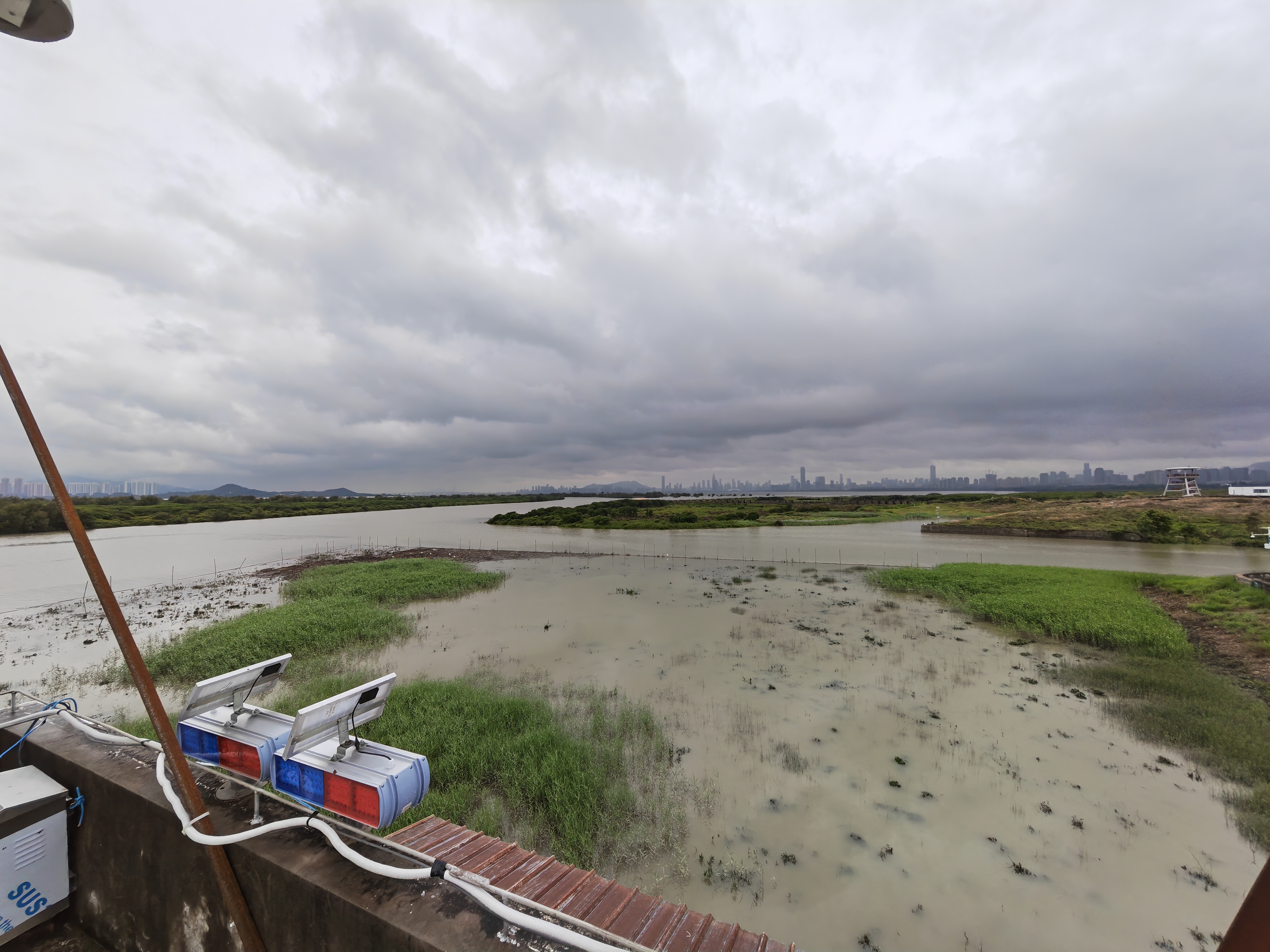 雷球探照燈系統(tǒng)安裝于深圳灣區(qū)域金葵大道與桃花路交接處,該位置偷渡走私違法行為較為嚴重。