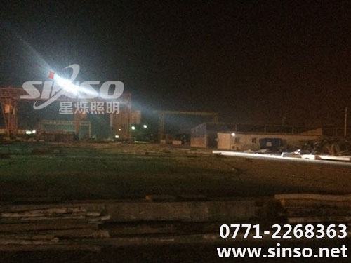 甘肅蘭州中鐵制梁廠于2015年11月采購了5臺星爍SN-221無線遙控探照燈,用于制梁廠夜間照明。制梁廠通常都會堆放有很多價值高的大型物資設備,因為場地規(guī)模大、人員缺少、監(jiān)控設備夜間拍攝距離有限、對于這些物資設備的看護放到一直是眾多業(yè)主的難題。
