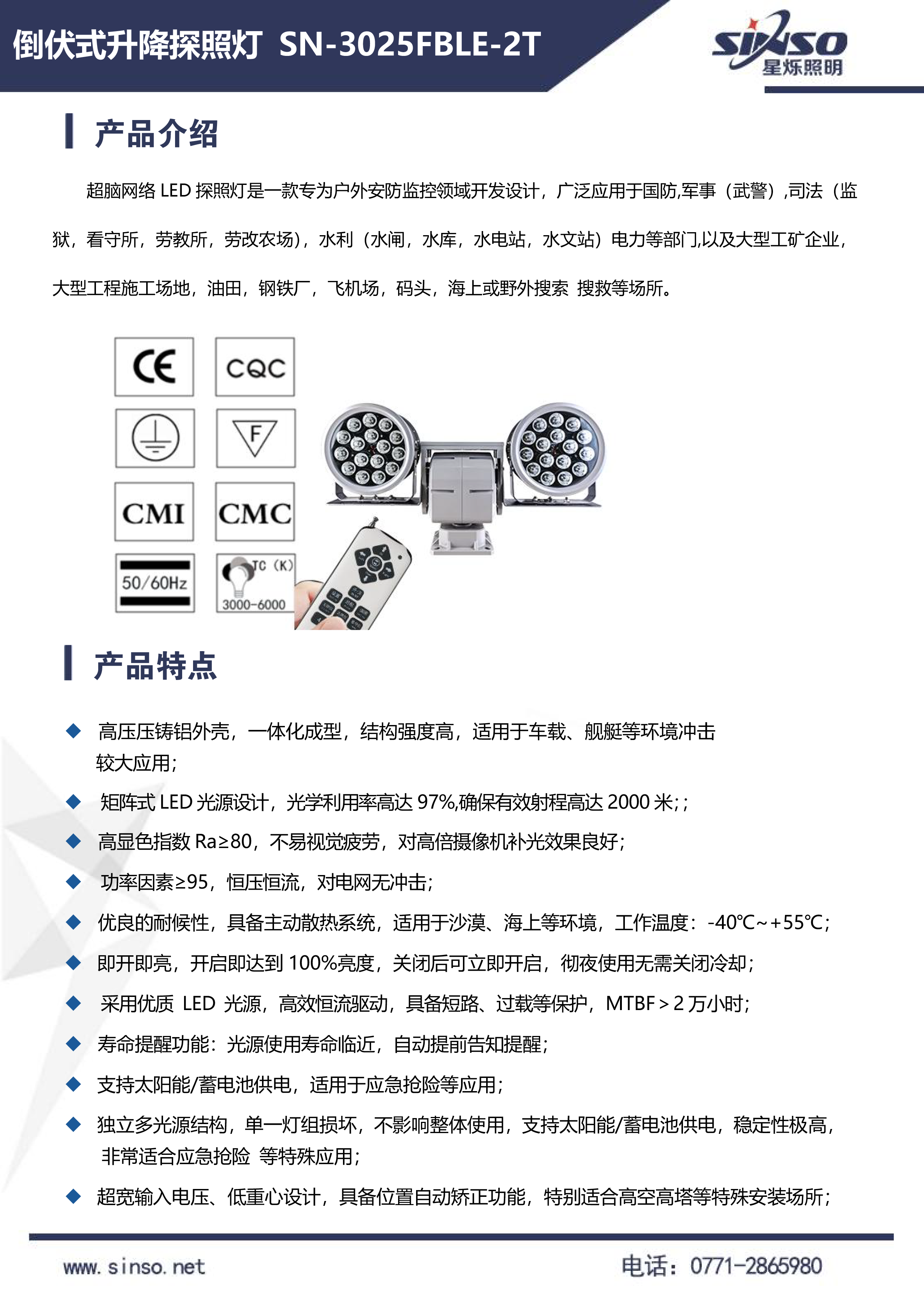 倒伏式升降探照燈 SN-3025FBLE-2T