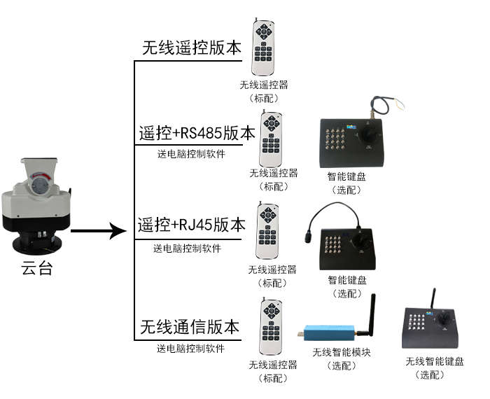 無(wú)線遙控/智能鍵盤/軟件控制/串口 (可選) |