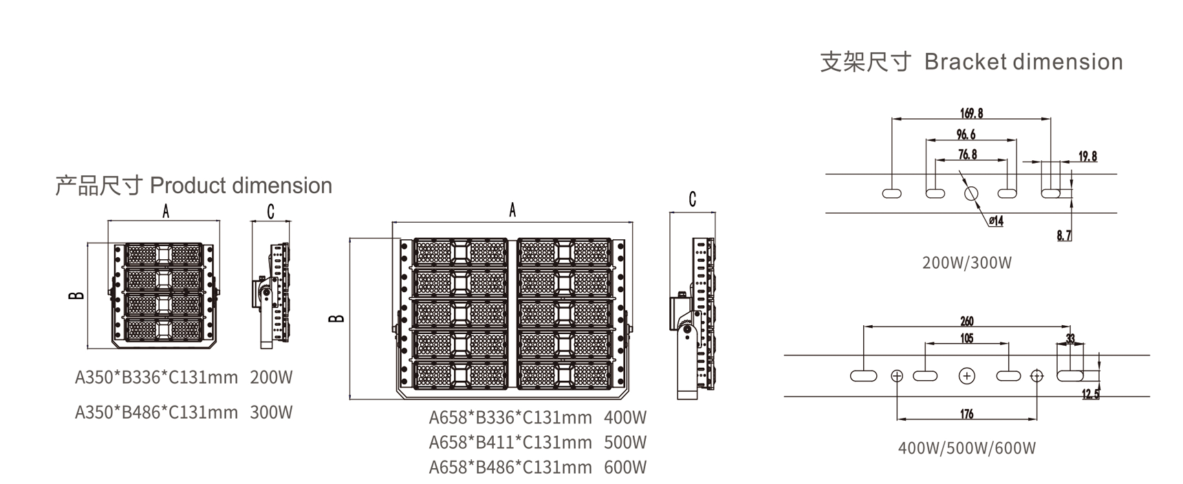 1.模組化設(shè)計,三種配光角度可選45°、60°、90°