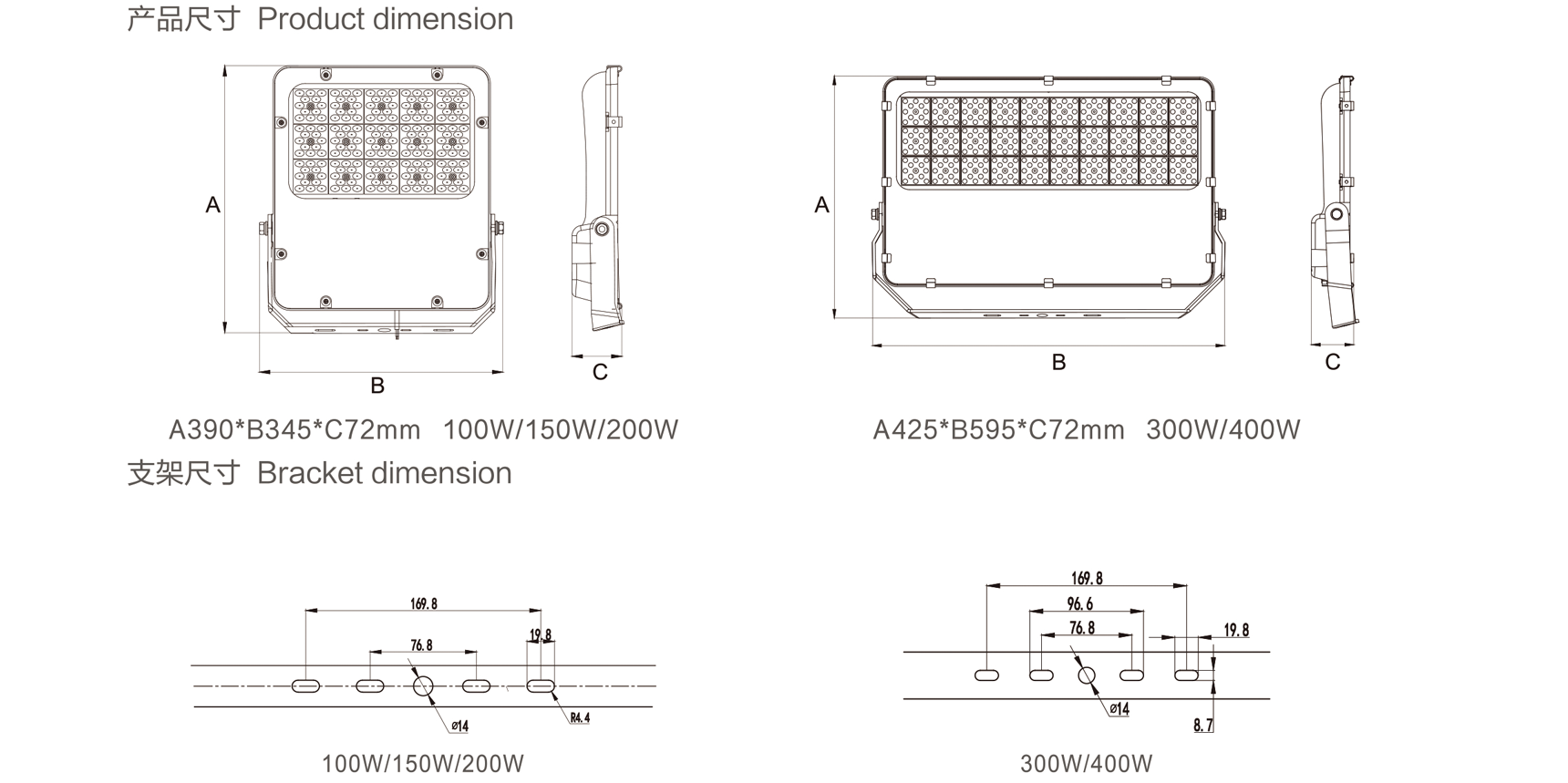 4. 壓鑄鋁散熱體,達(dá)到絕佳散熱效果,確保燈具壽命