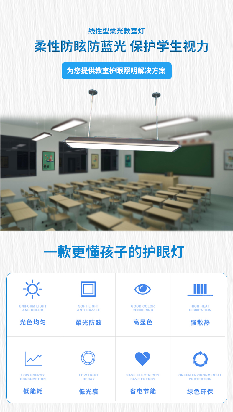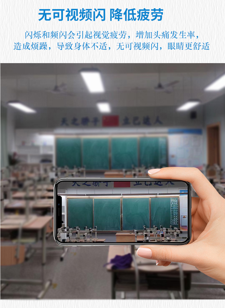 教室照明,在我國中小學(xué)校一直停留在比較落后的水平,其表現(xiàn)在,教室照明設(shè)計不合理,存在以下問題:1.藍光危害:容易造成視覺疲勞導(dǎo)致近視;2.頻閃嚴(yán)重:頻繁自主調(diào)節(jié),引起視覺疲勞;3.炫光值高:容易分散學(xué)生的注意力,無法集中精力學(xué)習(xí);4.顯示指數(shù)偏低:影響眼睛對物體色彩的正確判別;5.色溫偏高:光線顏色過于偏白容易引起學(xué)生亢奮;6.照明度不足:照明亮度分布不均勻的環(huán)境下學(xué)習(xí)會影響學(xué)生用眼;落后的教室照明質(zhì)量直接影響著學(xué)生的視力健康和學(xué)習(xí)效率。