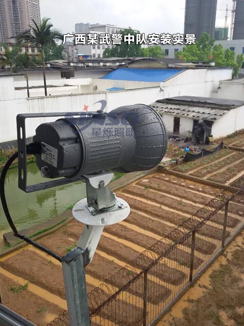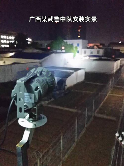 廣西某武警中隊(duì)起初因怕探照燈被雨淋而將其安裝在遮陽(yáng)棚下,星爍氙氣探照燈的防水等級(jí)達(dá)IP65,即使在雨淋中也能正常工作,非常適用于武警、監(jiān)獄、部隊(duì)的探照燈,有效射程可達(dá)1500米,超高亮度,可連續(xù)一晚上作業(yè),無(wú)需中途關(guān)閉冷卻,在夜間有幾大的威懾力,可作為監(jiān)控設(shè)備輔助照明,配合高清攝像頭,可拍攝800-1000米的環(huán)境。