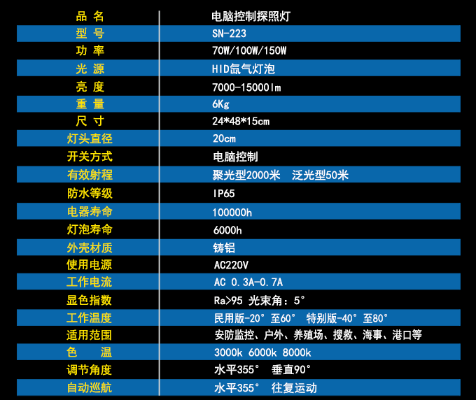 新品上市SN-223電腦控制探照燈